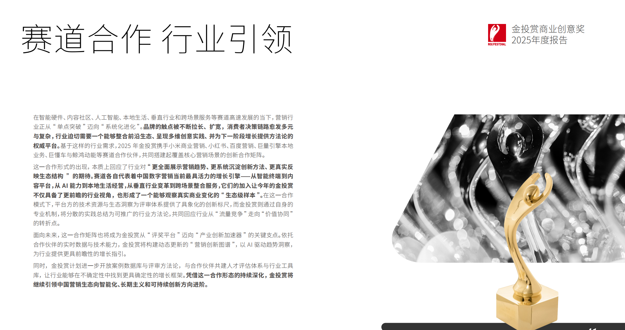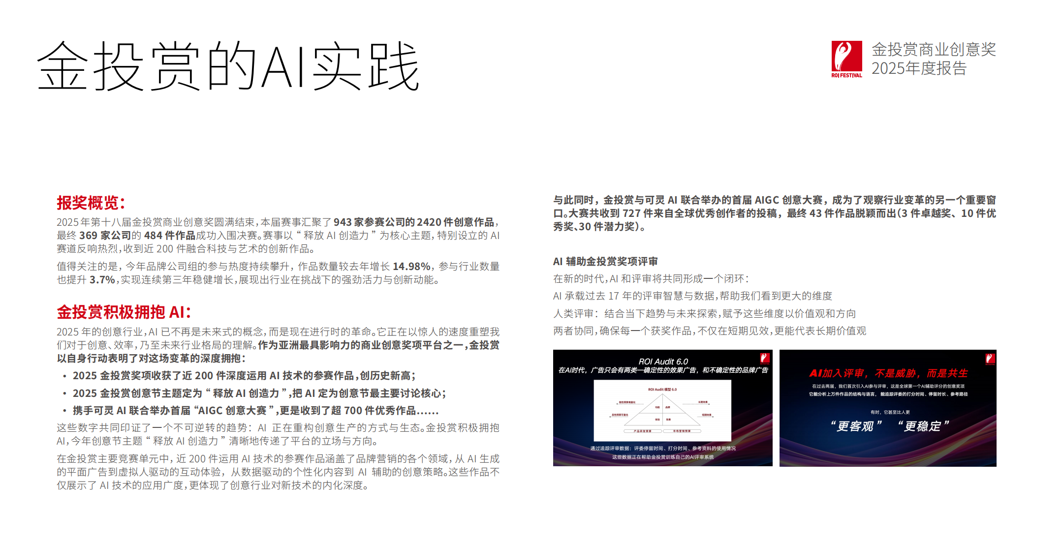 「 让短期可证的 ROI,汇入长期可积的价值 用短期成效验证创意,用长期价值成就品牌」。金投赏相信:好创意可以带来可衡量的增长,同时承载社会温度。